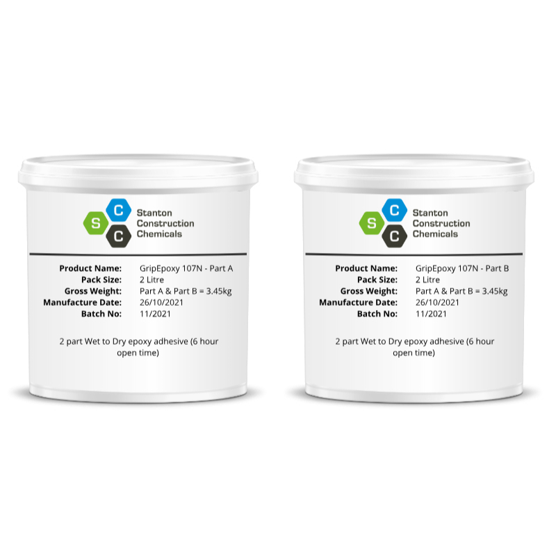 GripEpoxy 107N is a modified epoxy adhesive with very high adhesion properties to concrete, brick and steel. It provides a structural bond between wet and cured concrete. It is also an effective anti-corrosive coating for steel rebar.